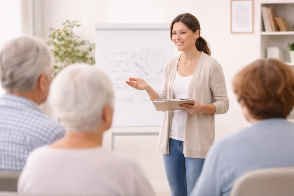 Brindamos formación práctica dirigida a cuidadores y familiares para ayudarles a comprender la enfermedad, mejorar el cuidado diario y cuidar también de su propio bienestar.